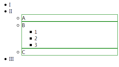 使用 $('ul.level-2').find('li').css('border', '1px solid green'); 的效果是: