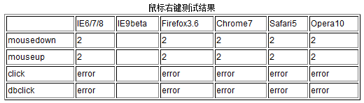 以上可看到,判断鼠标按下了哪个键 ,应该选择合适的事件 。这里应选mousedown/mouseup。Opera10中仍然无法获取到中键的值,因为Opera压根不触发中键的事件(mousedown,mouseup,click,dbclick)。