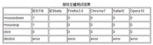 IE6/7/8中,mousedown/mouseup 事件中获取左键的值为1,click事件中获取的却是0。