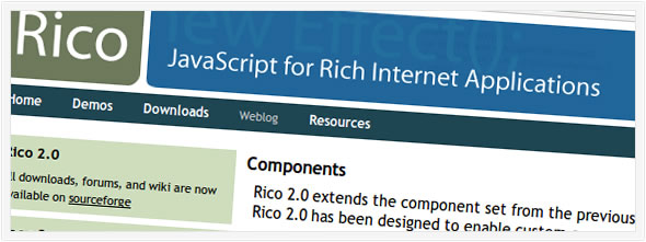 11. Rico Javascript FrameworkRico 是一款优秀的用于富Web应用程序开发的JavaScript框架。