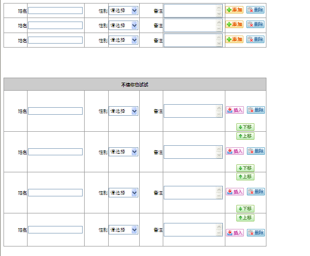 这是一个我认为功能基本完善的插件,它包括添加、删除、插入、上下移动、索引标识、 数量控制等功能,基本上能满足大部分多行添加的需求,当然,在完成这些功能的前提下,我也尽量保持较少的代码量和易理解的逻辑性。