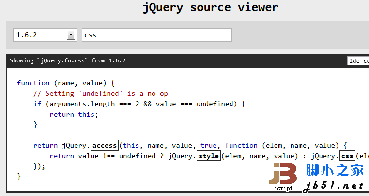这个jquery源代码查看器,还不是很强大,只是能够简单的查看函数引用,但是不能返回。