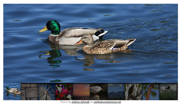 Responsive Thumbnail Gallery Plugin这是一款带缩略图功能的幻灯片插件,能够根据父容器的尺寸自适应大小,效果不错。