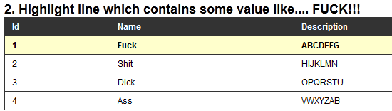 $("#table2 tr:contains('Fuck')").addClass("selected");