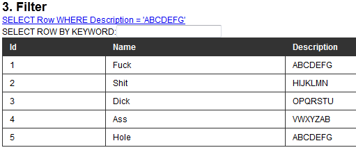 $("#table3 .datarow").hide().filter(":contains('ABCDEFG')").show();