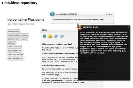 在建立功能齐全,完全可换肤的容器,这是一个有用的插件。容器可以设置拖动,调整大小,可折叠和可最小化。