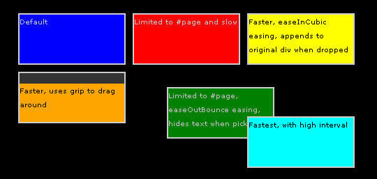 ppDrag是一个jQuery拖放插件,它模仿了jQuery UI的可拖动的界面。目前支持的是其选择的一小部分,但实施是不同的(ppDrag集中表现)。