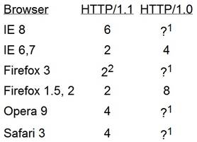 这里说句题外话:游览器对同一域名下的并发链接数也是有限制的,其他一些参数如下:
