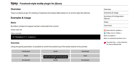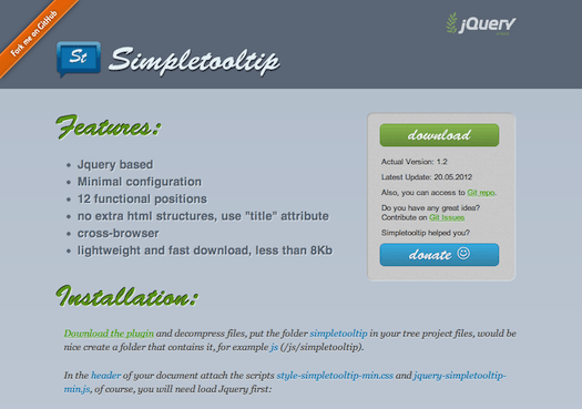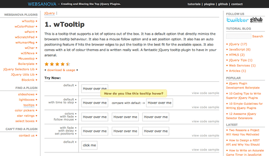 在web开发当中,工具提示条对于完善web网站的用户体验至关重要。title属性通常是用来帮助用户了解显示链接的信息。默认情况下用于一个访客来说真是不好找,因为鼠标放上去他才可能显示。如果做一个像电子商务网站的注册页面,页面包含这么多的信息,如何让用户可以把鼠标悬停链接他自动弹出醒目的信息。这个使用jquery强大的工具提示插件在这种情况下是可以的完美实现的。你需要做的就是添加title属性指定的类名。在这篇文章中,我收集了17个和新鲜的jQuery的工具提示插件,他们都是轻量级的工具提示插件,他们几乎没有相同的功能,你需要下载下面为他们配置类或者ID,就可以使用。