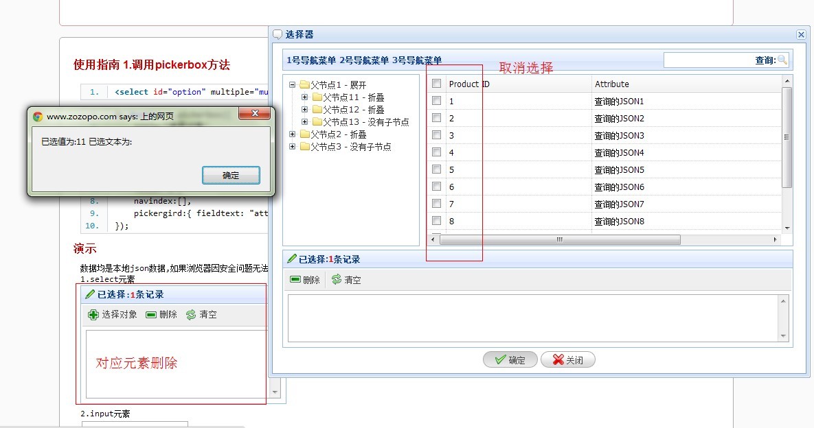 pickerbox简称采摘盒子,是基于Jquery的插件,同时也依赖了Ztree3.2,Easyui1.26,及AsyncBox1.4.5.主要为了解决选择多条件的数据.