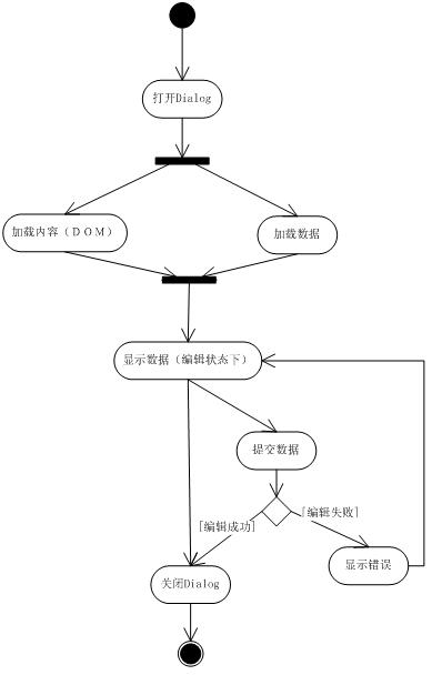 1. 加载的第一种,将Dialog内容(DOM)事先隐藏在页面中,编辑完数据后异步提交数据,这种方式我们在项目中使用的最多,只要处理好显示数据,错误回传显示,基本能满足日常应用。