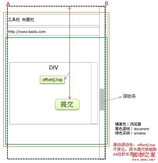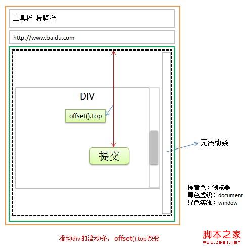 图2:document中的div有滚动条,提交按钮的offset随div的滚动变化而变化,与document无关