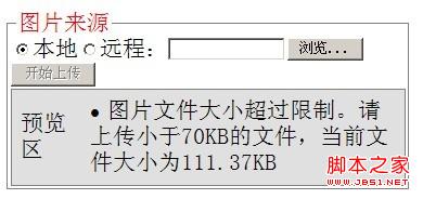 注意读者可以直接复制以上代码,另存为HTML文件里,预览JS限制上传图片大小效果