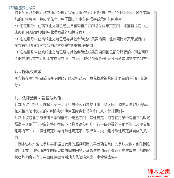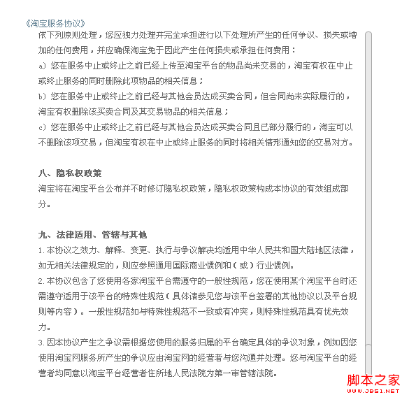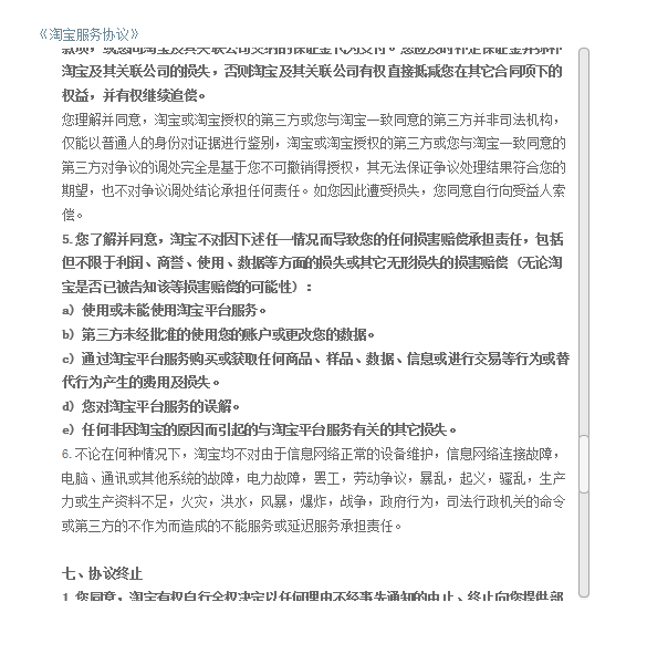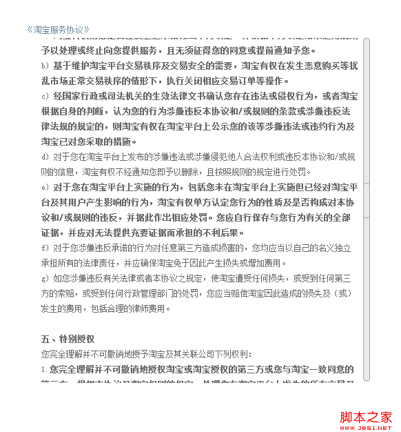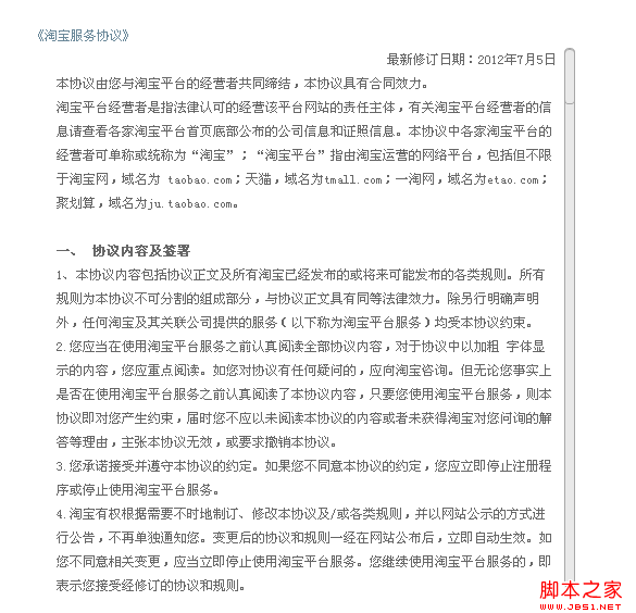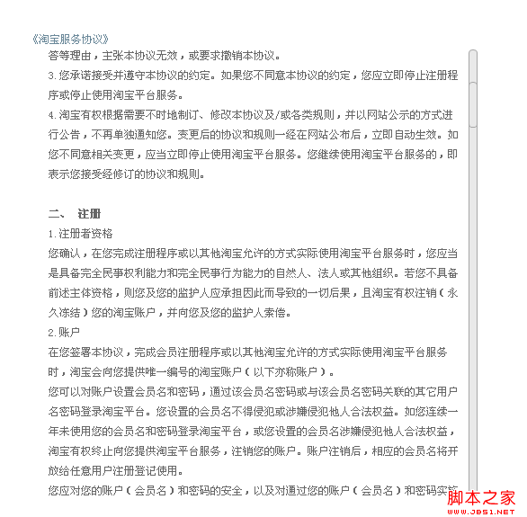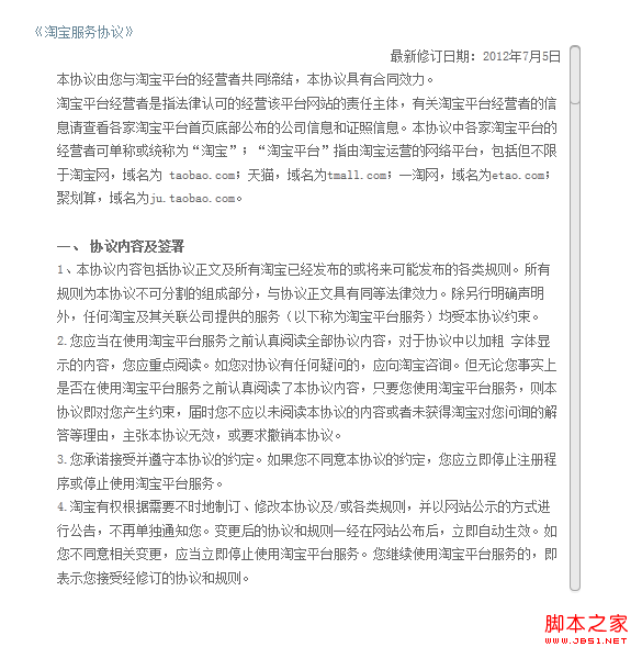 该控件的demo使用了淘宝网用户注册协议内容,因为firefox、chrome等高级浏览器都能保证很好的兼容性和显示效果,所以这里只展示ie低版本浏览器显示效果, ie浏览器显示截图如下: