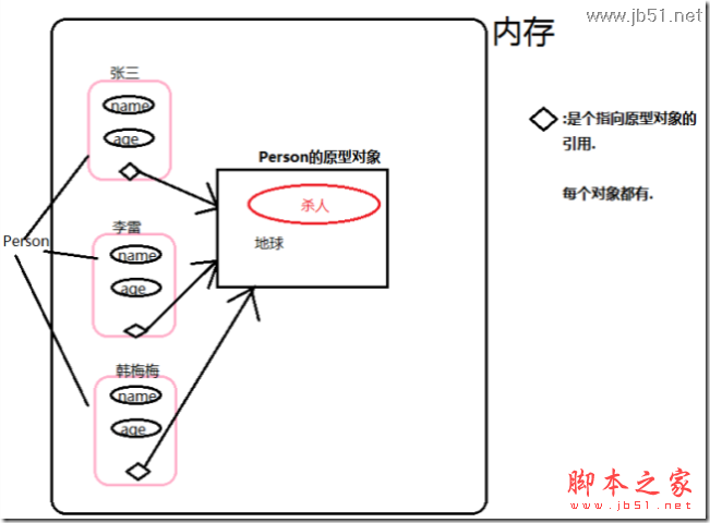 原型对象,就是其它语言中的类中的静态属性和静态方法,总是是静态-static就对了.原理是: 内存中只有一份.