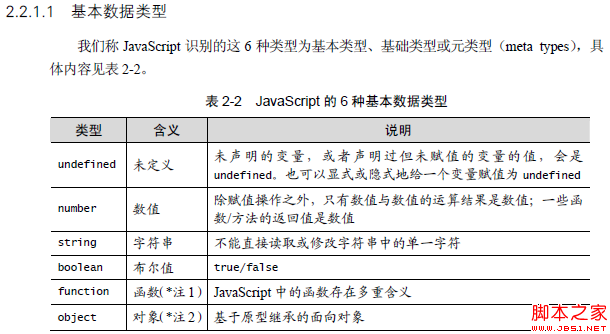不是所有的书都认为JavaScript中基本类型只有5种(不包括对象),《JavaScript语言精髓与编程实践》认为是6种,如下