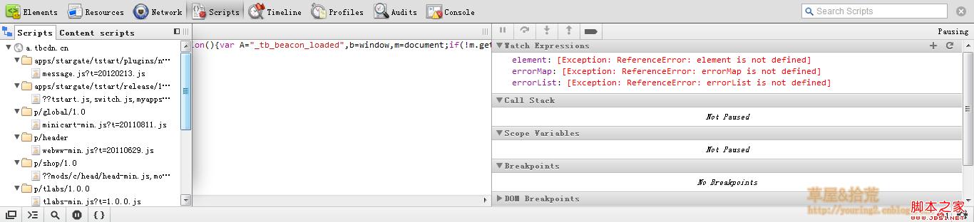 CSS标签是用来查看样式的;控制台显示网页中JS的各种输出信息,包括错误信息、用户日志等;打开脚本标签页,这里面才是我们想要的内容。