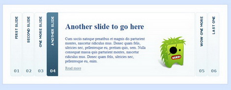 这是一款手风琴式的展示动画效果,可以用来展示图片,也可以用来做菜单。