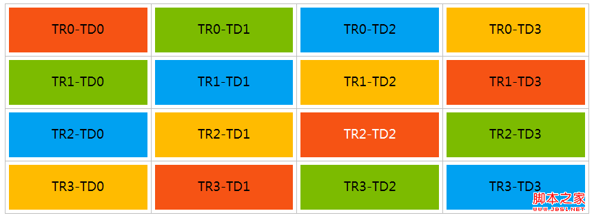 setTableItemStyle(tr,i%4);//每行四个单元格,四种颜色循环交错着色。