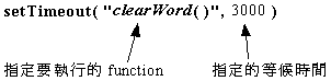 这是设定等 3 秒 (3000 milliseconds) 浏览器就会执行 clearWord( ) 这一个function。