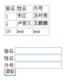 <tr><td>2</td><td>卢俊义</td><td>玉麒麟</td></tr>