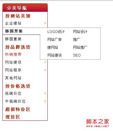 jQuery仿京东左侧菜单效果,适合商城产品导航,这里没有做的那么细,只是使用CSS结合jQuery完成了菜单的简单效果,如果需要美化,请您在实际应用中自己搞一下吧,兼容性非常不错的,欢迎大家使用。