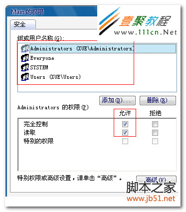 ,再在左则右击main,权限,所有用户权限设置为完全控制,如下图: