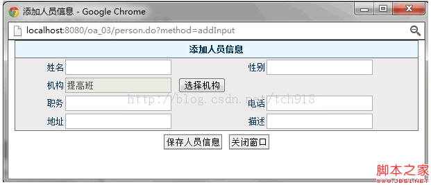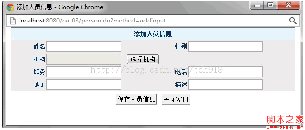 实例:添加人员信息时,其中的机构信息通过子窗体完成输入