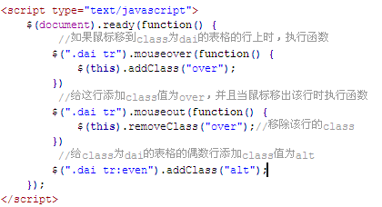 jQuery插件实现表格隔行换色且感应鼠标高亮行变色