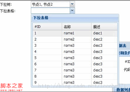 下拉树的代码很简单,只要集成Ext.form.field.ComboBox类,然后重写createPicker方法就可以了,同理下拉表格也是如此,下面是下拉表格的代码: