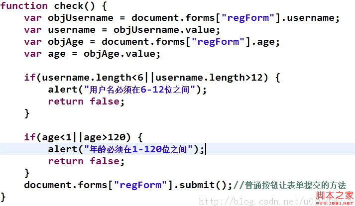 例:<input type="submit" name="Submit" value="注 册" onClick=" return check();">,在JS中判断的时候 写return true; 或者 return false; button:普通的按钮,不会自动提交表单数据.可以在JS中显式提