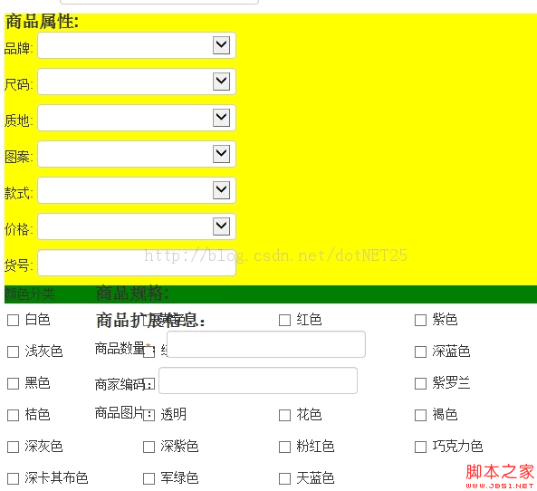 商品属性和商品规格是js动态生成的元素,商品扩展信息的两个文本框是原有的元素,他们发生堆叠,我以为是我生成的元素所在div大小不固定导致的,因为商品规格的下面复选框是第二次ajax生成的,我怀疑第二次ajax是不是不能将页面原有元素向下推到合适的位置。