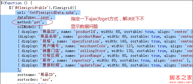 Flexigrid在IE下不显示数据的处理的解决方法