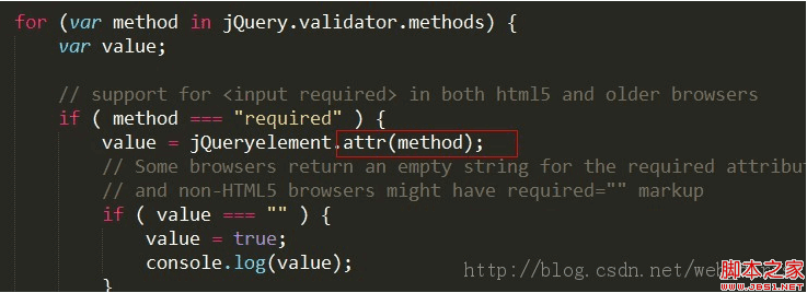 这个确实能达到相要的效果,但是在ie8下竟然有问题,valid()方法始终返回false,而且所有的字段都会被当成必填字段校验,纠结了好久,因为jquery的插件代码都很复杂,所以刚开始看特别费劲,后来一步一步排查,找到问题了,问题出在attributeRules()函数上: