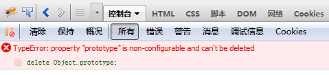 1,内置对象的属性及方法多数不能delete保护该语言最核心API,这些API被delete了,基本上就废了。如delete Object.prototype。