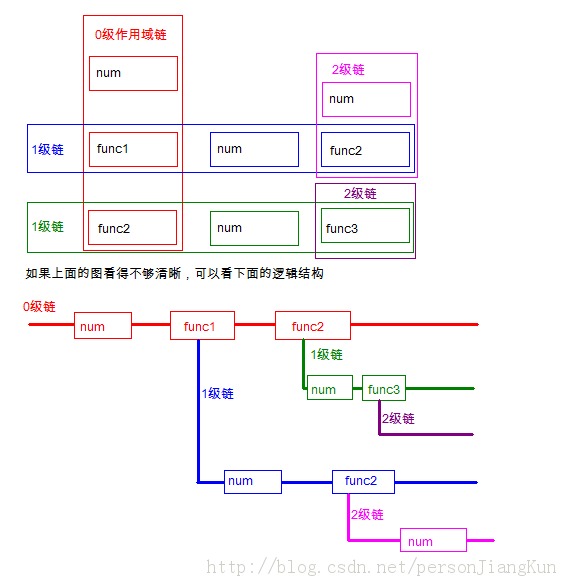域链,里面有成员num. 因此在调用函数func的时候,就会检测到在当前作用域中