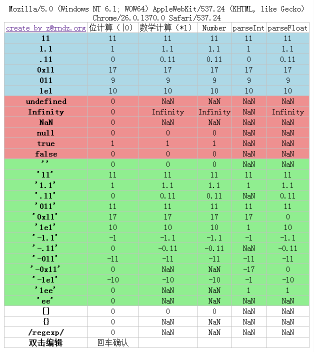 Demo,用来测试不同方法、数值转换后的结果。下面的截图是在 chrome 下的转换。