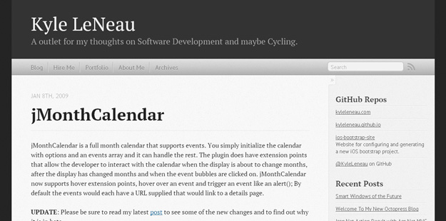 jMonthCalendar 是显示整整一个月的日历,支持添加相应的事件。用户可以用选项和简单的事件数组来初始化日历,后面的事情就可以交给 jMonthCalendar 了。这是个 jQuery 日历插件,带有扩展的功能,允许开发者与日历有很好的交互,比如当日历显示要修改月份的时候,或者是显示修改后的月份和点击日历事件之后。 jMonthCalender 现在支持 hover 扩展功能,鼠标在事件徘徊的时候就会触发事件。默认的时候,时间都会伴随有 URL 超链接,用户点击可以链接到详细信息的页面。