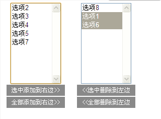 就是实现这个效果的,选中添加到右边,全部添加到右边,选中删除到左边,全部删除到左边。