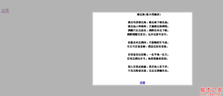 <a href="javascript:showDiv('popDiv')" style="font-size:20px;margin-left:100px">出现</a>