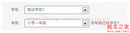 以同一学校下不能有相同年级为例,在验证的时候用remote方式: