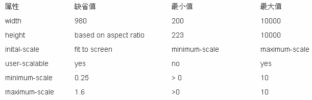 viewport标签包含如下属性: