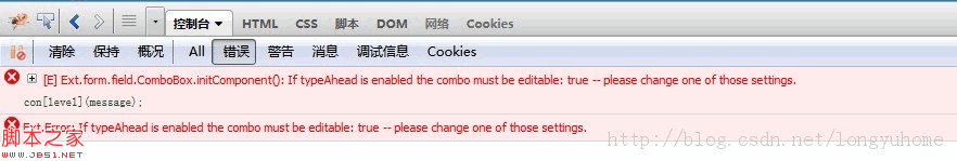 今天朋友遇到了一个问题:ExtJS中的下拉列表如何设置不可编辑的,html中是不可以编辑的,但是现在这种UI框架中的下拉列表框都是可以编辑的,朋友的需求就是像html中的那样效果,所以朋友想到了用editable属性,但是写了这个属性之后就报错了,当时并没有看错误,我给他找了1个属性设置为不可编辑的,但是还是不好使,又看了一遍的错误,查了一下API,最后解决了这个问题。