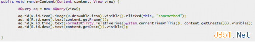 Android Query简化了附加事件处理程序的过程。它不会构建出接口或者匿名类,我们只需要确保它们不会把事件处理程序的方法名拼写错。