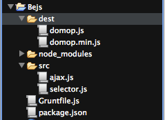 源码放在src下,该目录有两个js文件,selector.js和ajax.js。编译后代码放在dest,这个grunt会自动生成。
