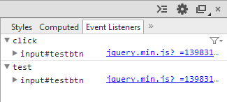var event = lookEvents($("#testbtn")[0]); // 获取绑定的事件