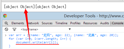document.write 也不是不行,但是对于对象输出,你只能看到 [object Object] 这样的东西。