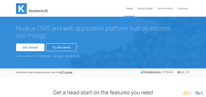 KeystoneJS是一个基于Express与Mongoose的Node.js CMS内容管理平台和Web应用平台。使用它可以方便快速建立基于数据库驱动的网站应用,还提供了安全认证和会话管理、动态路由、能够对密码自动加密、表单校验处理、自动产生管理界面、Email邮件发送等。