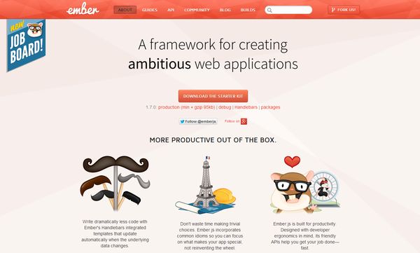 Ember是一个雄心勃勃的Web应用程序,消除了样板,并提供了一个标准的应用程序架构的JavaScript框架。