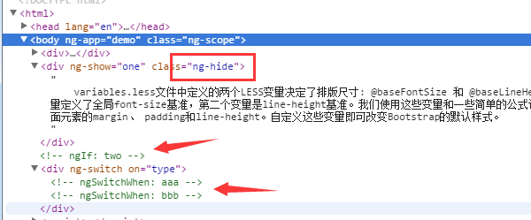 在Angular的原生指令中有这几个指令用来控制元素的展示与否,ng-show/ng-hide/ng-if和ng-switch。